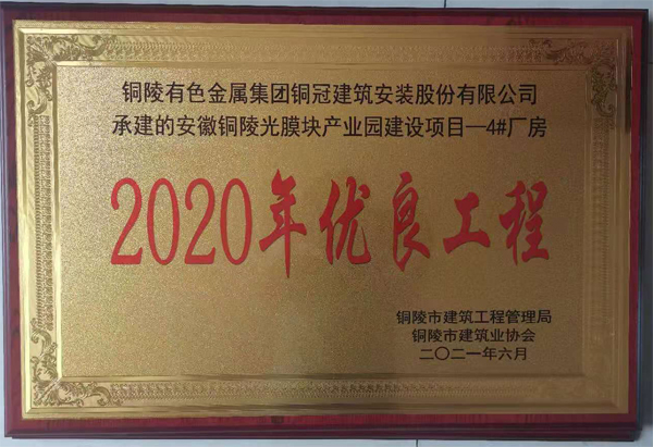 銅陵市2020年優良工程(安徽銅陵光膜塊...