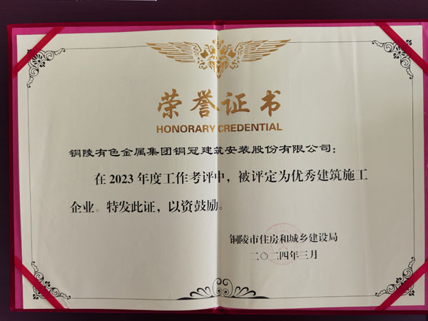 二O二三年度銅陵市建設工程“銅都杯”獎